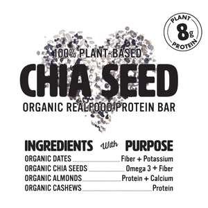 We keep it to five ingredients or fewer—centered on organic chia seeds, dates, almonds, and cashews—no preservatives or refined oils.
